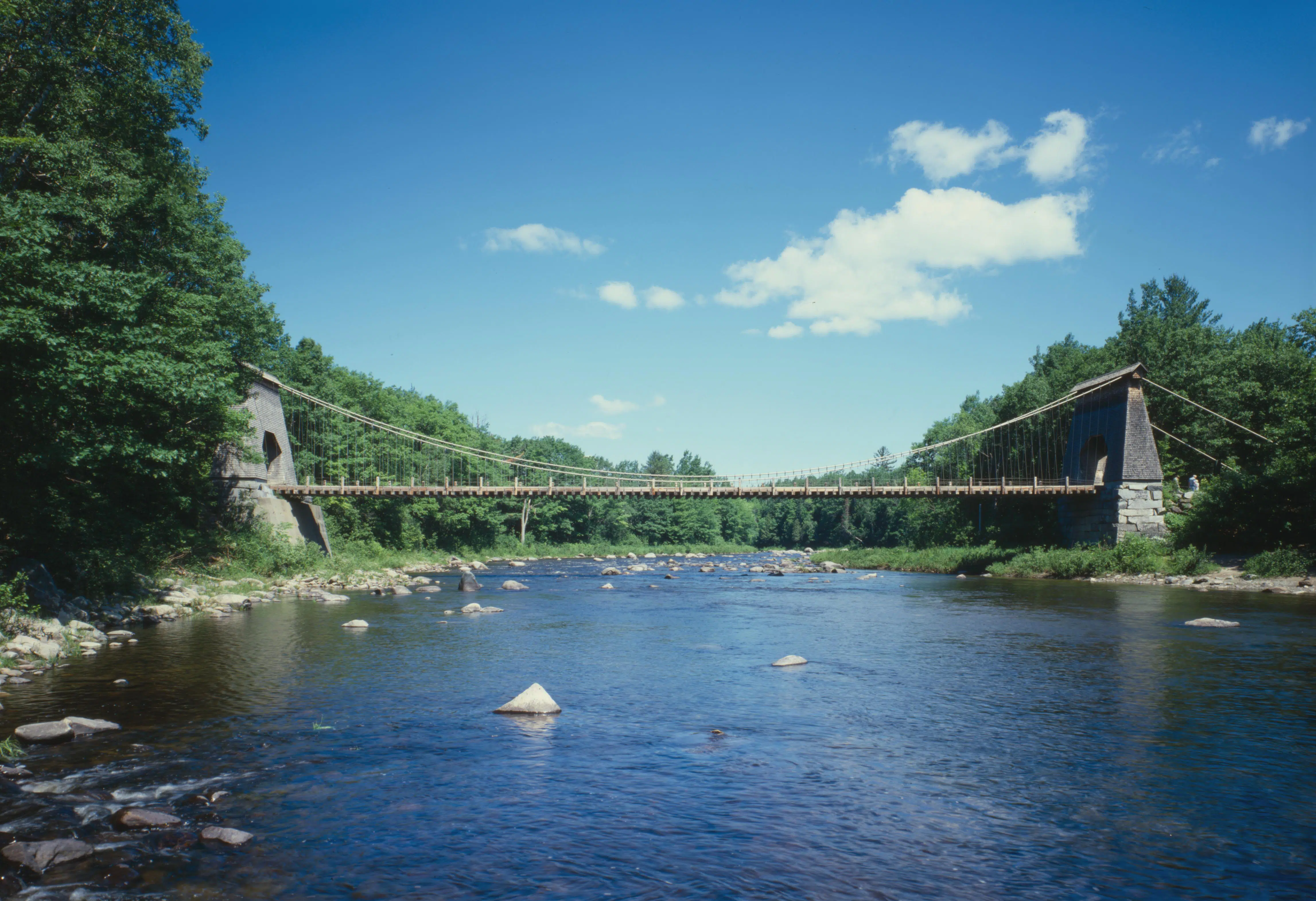 The New Portland Wire Bridge is about 10 minutes south of the center of town, spanning the picturesque Carrabassett River. It’s an engineer’s or photographer’s dream come true, plus offers you plain old-fashioned fun. Go try it out and you’ll get what I mean!
